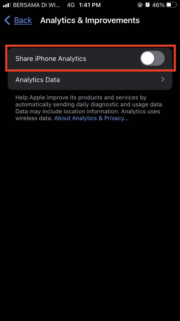 4. Next to Share iPhone Analytics, toggle off the button.