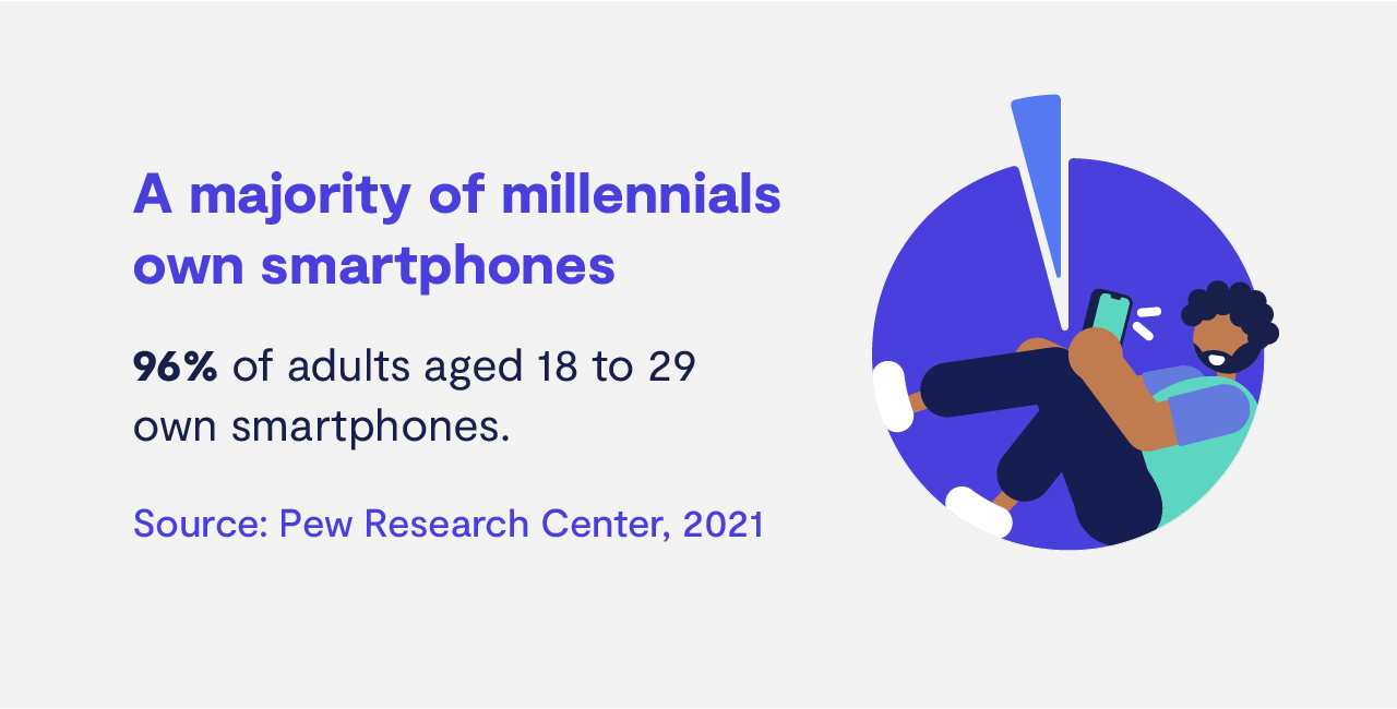 - 96% of adults ages 18–29 own a smartphone.