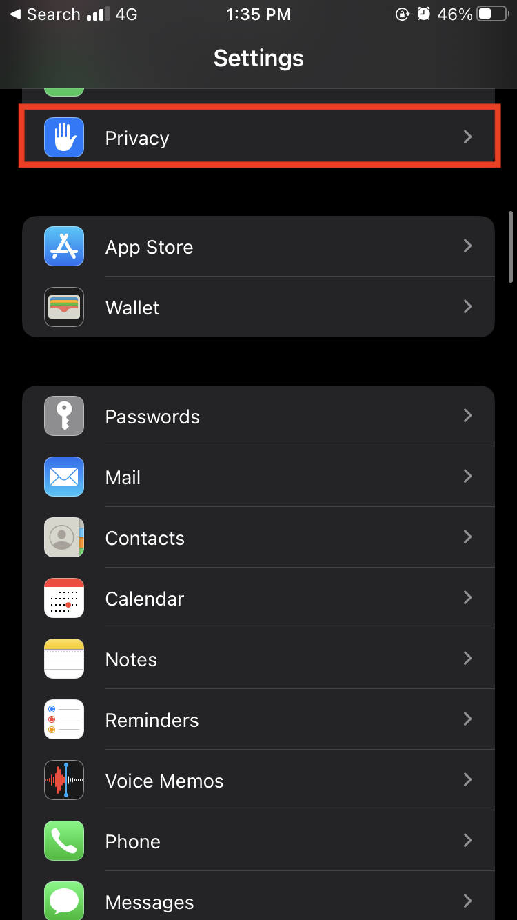- Select Privacy.