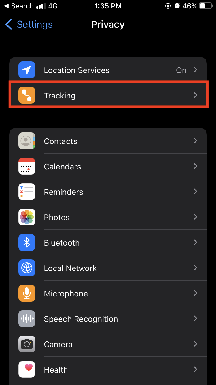 Follow these steps to turn off app tracking transparency requests: