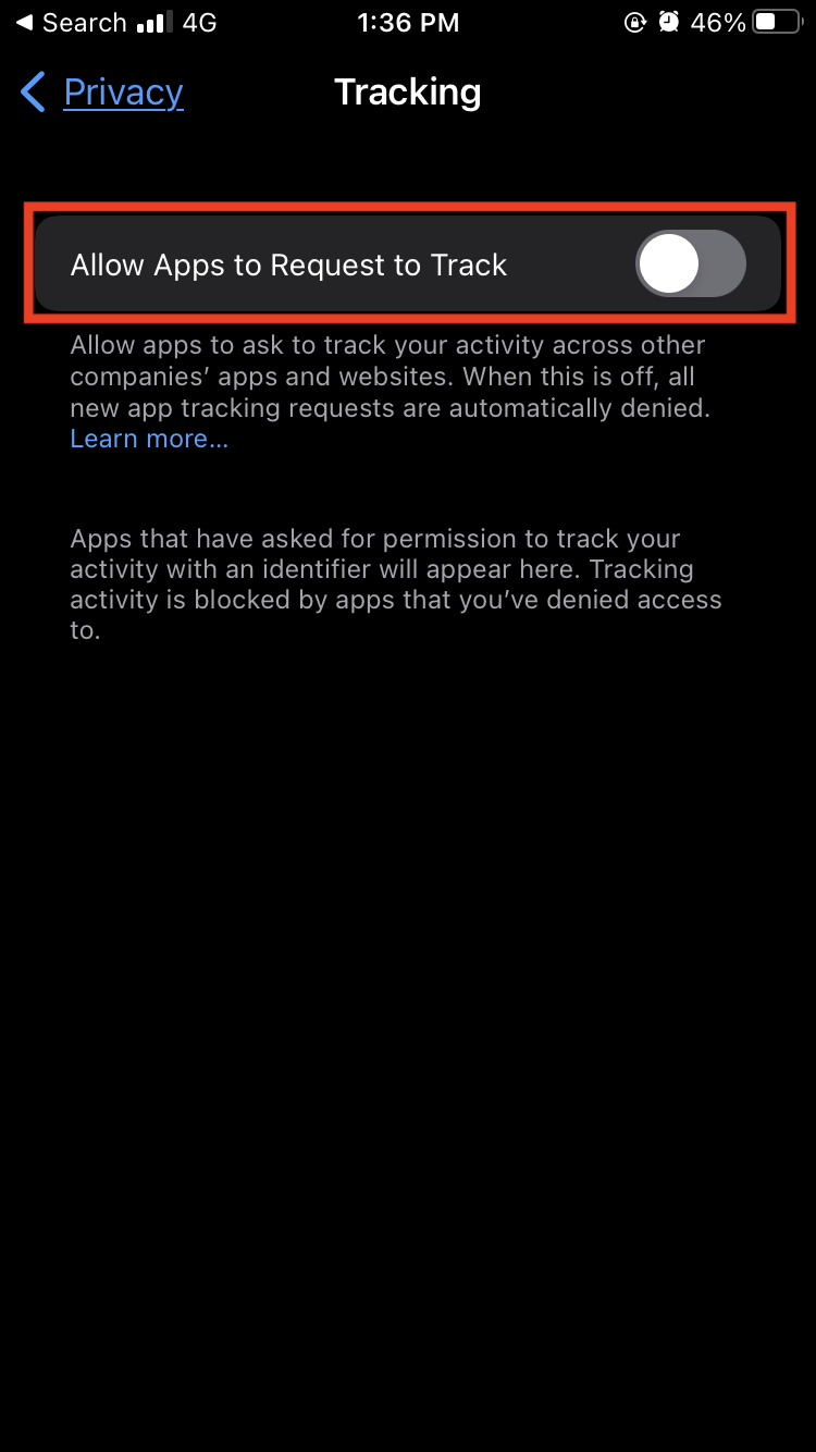 4. Under Allow Apps to Request to Track, turn the toggle switch off.