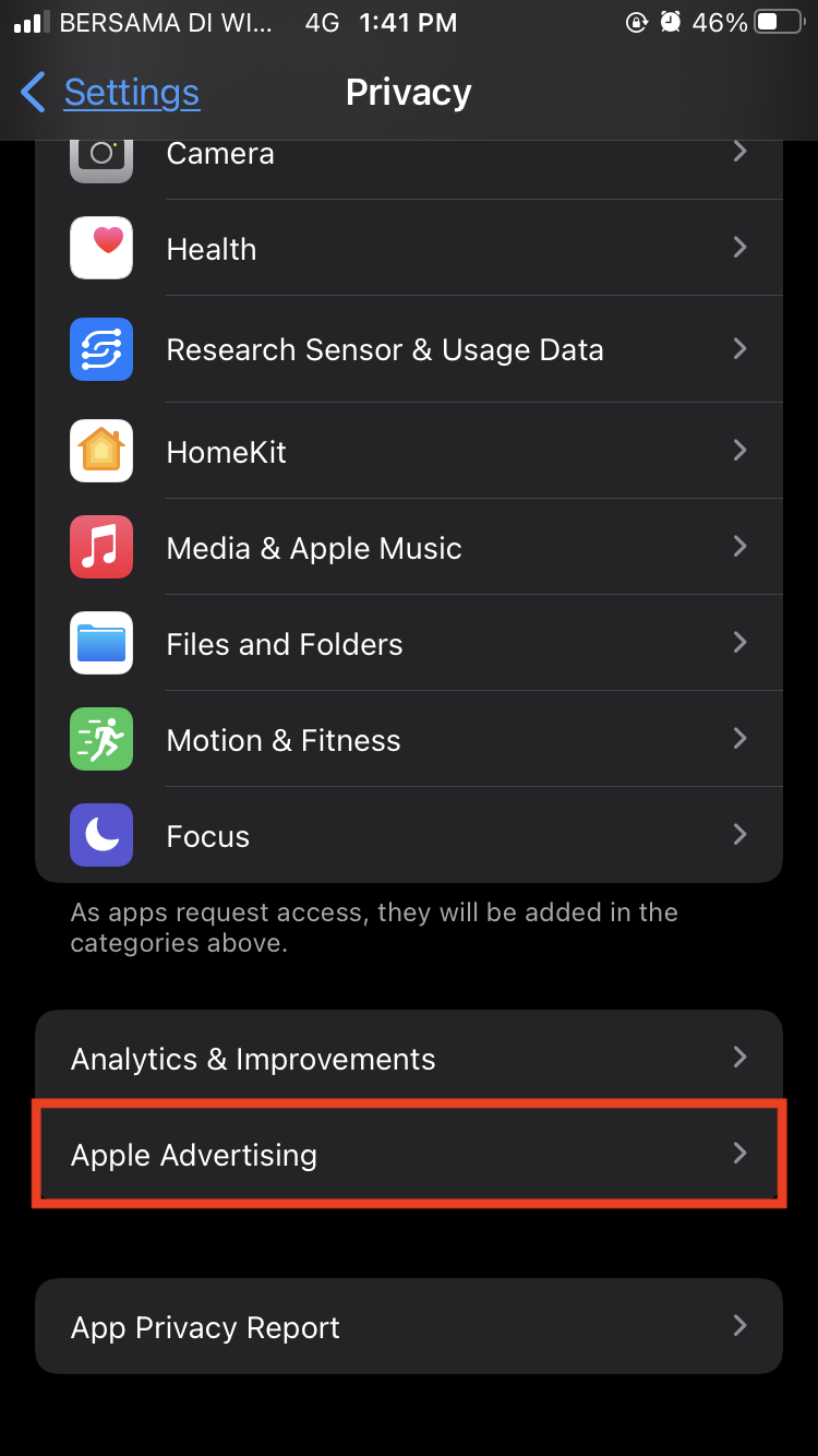 3. Tap Apple Advertising.