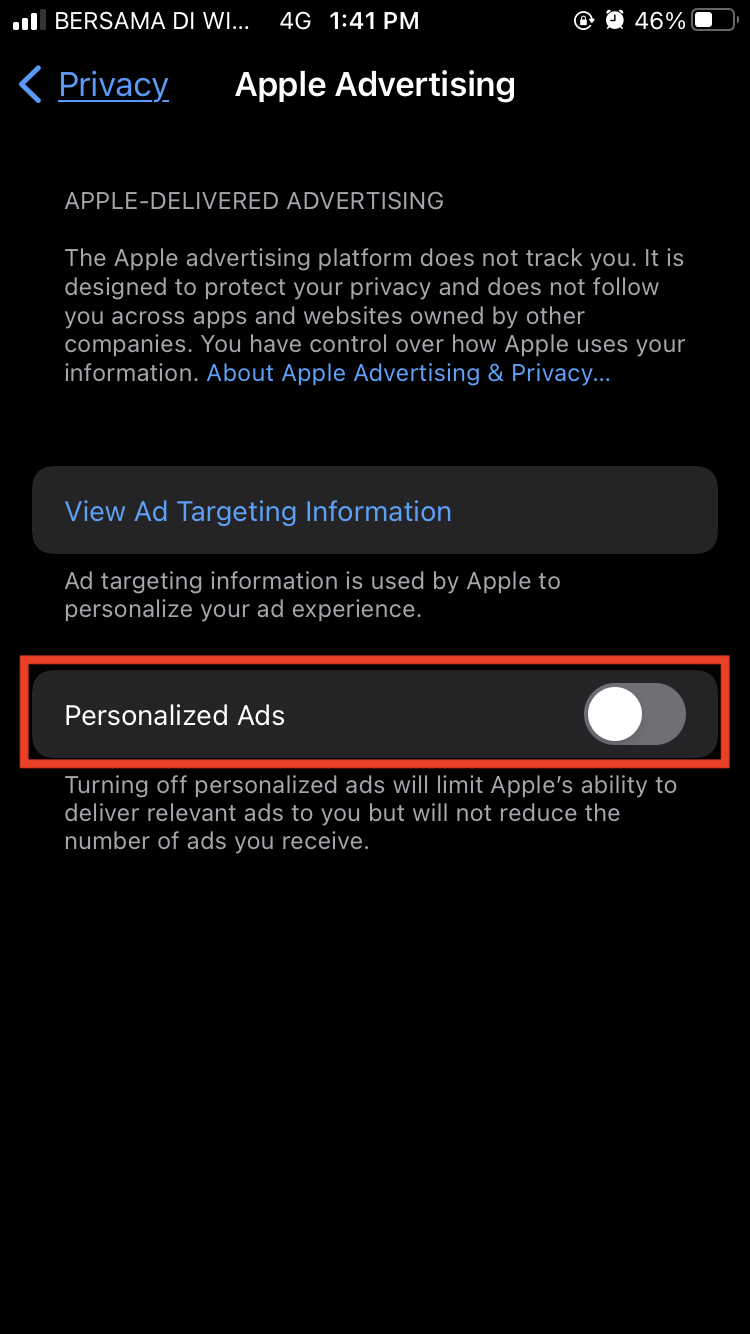 Once you have disabled app tracking transparency requests, the next step is to limit ad tracking on your iPhone altogether by turning off personalized ads.
